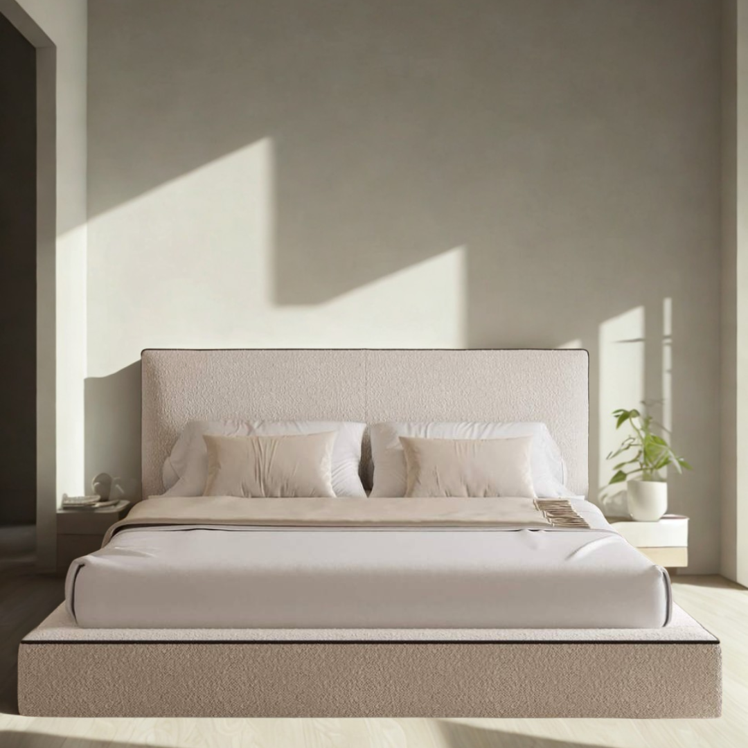 La cama modelo Tessa destaca por su costura en color negro que sobresale y enmarca elegantemente la estructura, aportando un acabado sofisticado y definido. Este detalle aporta un toque de distinción que realza el diseño, ideal para quienes buscan un mueble que combine funcionalidad con estilo contemporáneo.
